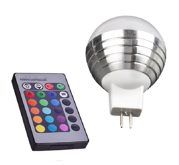 - LED Žárovka 3W kulatá MR16 12V RGB
