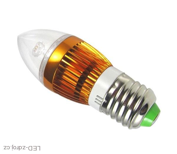 - LED žárovka svíčka zlatá E27 3W bílá čistá