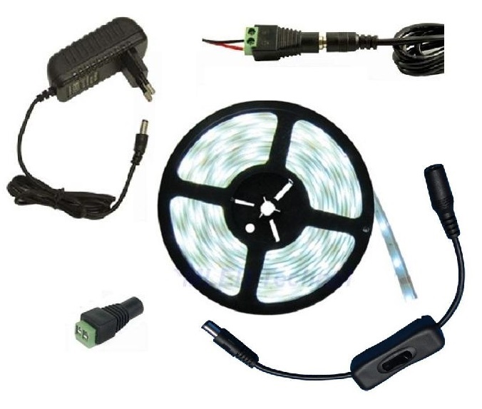LED pásek 5 metrů/300diod 3528 24W voděodolný čistá bílá komplet s vypínačem