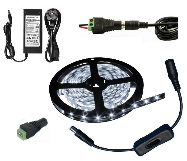 Součástí setu je kolébkový vypínač pro led pásky, který slouží k jednoduchému propojení a ovládání zdroje a pásku.
