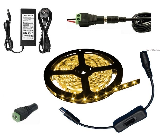 - Light LED pásek 5050 60LED/m IP65 14.4W/m teplá bílá, 3 metry, komplet vypínač