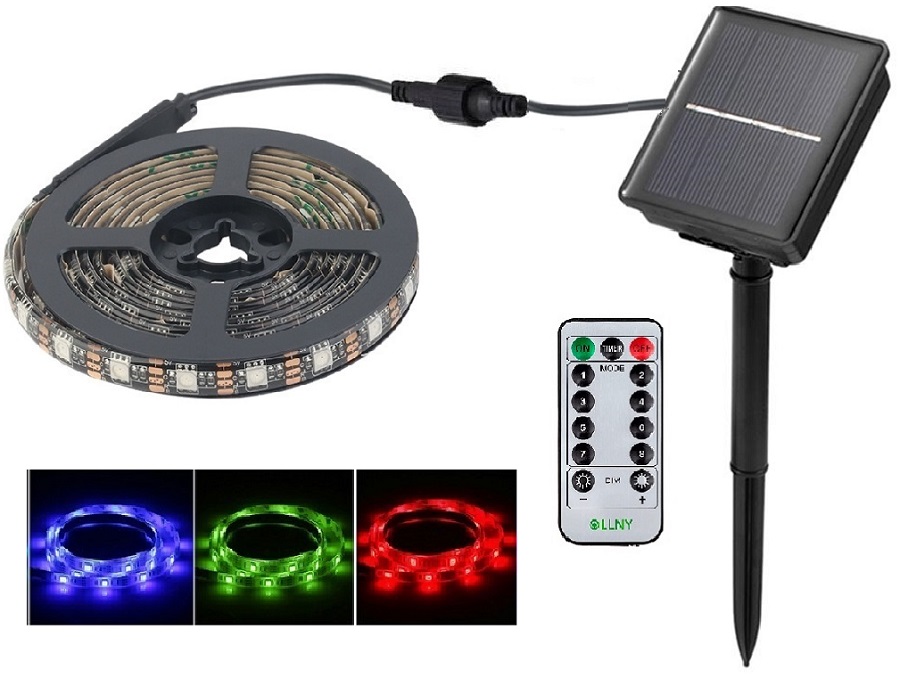 LED pásek RGB solární napájení 4 metry/90diod IP65 dálkový ovladač