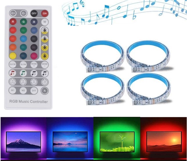 Speciální TV sestava LED pásku pro instalaci na zadní stranu vašeho televizoru se skládá se 4 půlmetrových led segmentu navzájem propojených pomocí flexibilních spojek. Jednoduché ovládání pásku pomocí přiloženého dálkového IR ovladače se zabudovaným mikrofonem a 4 přednastavenými režimy umožňující reagovat na zvuky a hudbu. LED pásek lze též ovládat pomoci aplikace ve vašem mobilním telefonu.