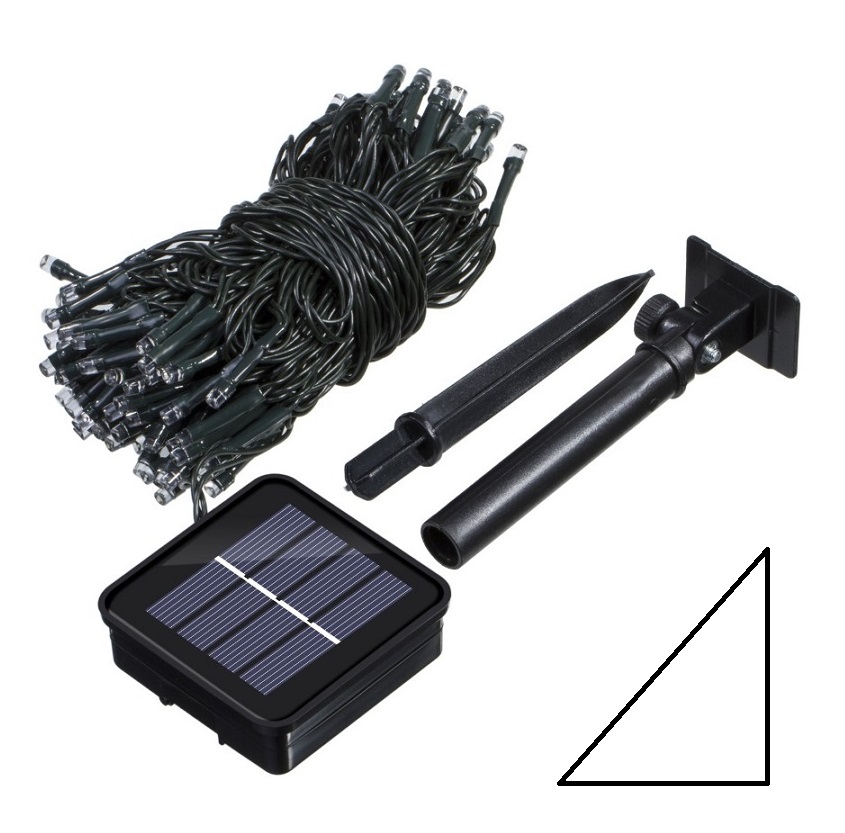 světelný řetěz se solárním panýlkem, napájený ze sluneční energie, přes den naakumuluje energii a po setmění se řetěz sám rozsvítí.