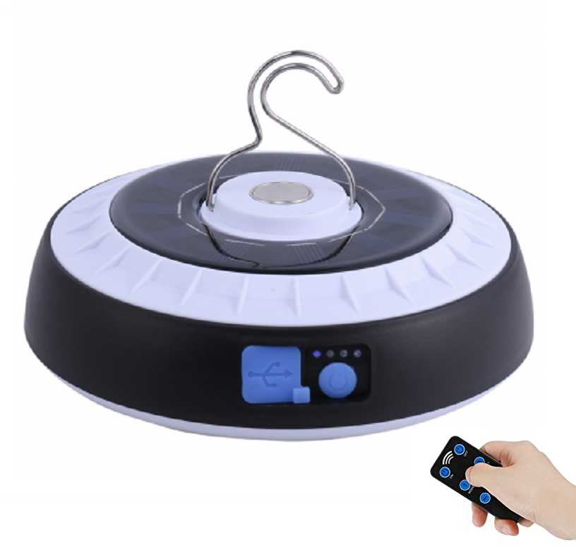 Solární závěsné přenosné světlo s magnetem a dálkovým ovladačem.